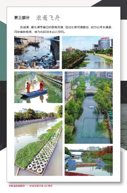 第三部分 浪遏飞舟 彭越浦、夏长浦等昔日的黑臭河道,经过长效河道整治,如今已河水清澈, 河岸绿树成荫,成为市民滨水公共空间。 光影漫旅画静安——纪念改革开放 40 周年 34
