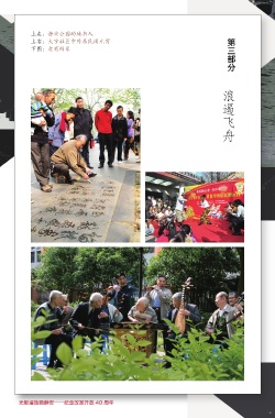 第三部分 上左:静安公园的地书人 上右:大宁社区中外居民闹元宵 下图:老有所乐 浪遏飞舟 光影漫旅画静安——纪念改革开放 40 周年 50