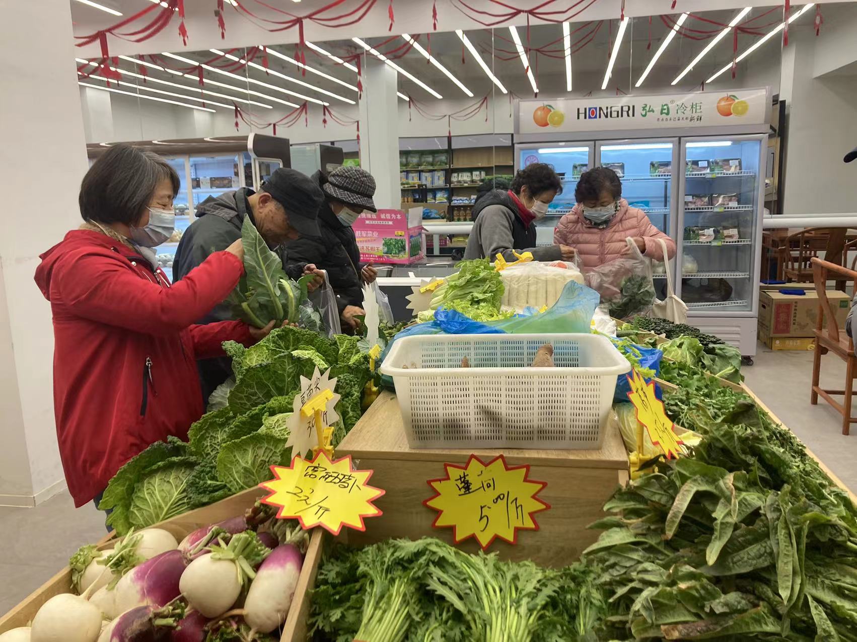 记者在现场看到,琳良满目的商超物品摆放得整整齐齐,新鲜的蔬菜放在了最显眼处供居民直接挑选,干净整洁的购物环境也吸引来往路人进来选购。