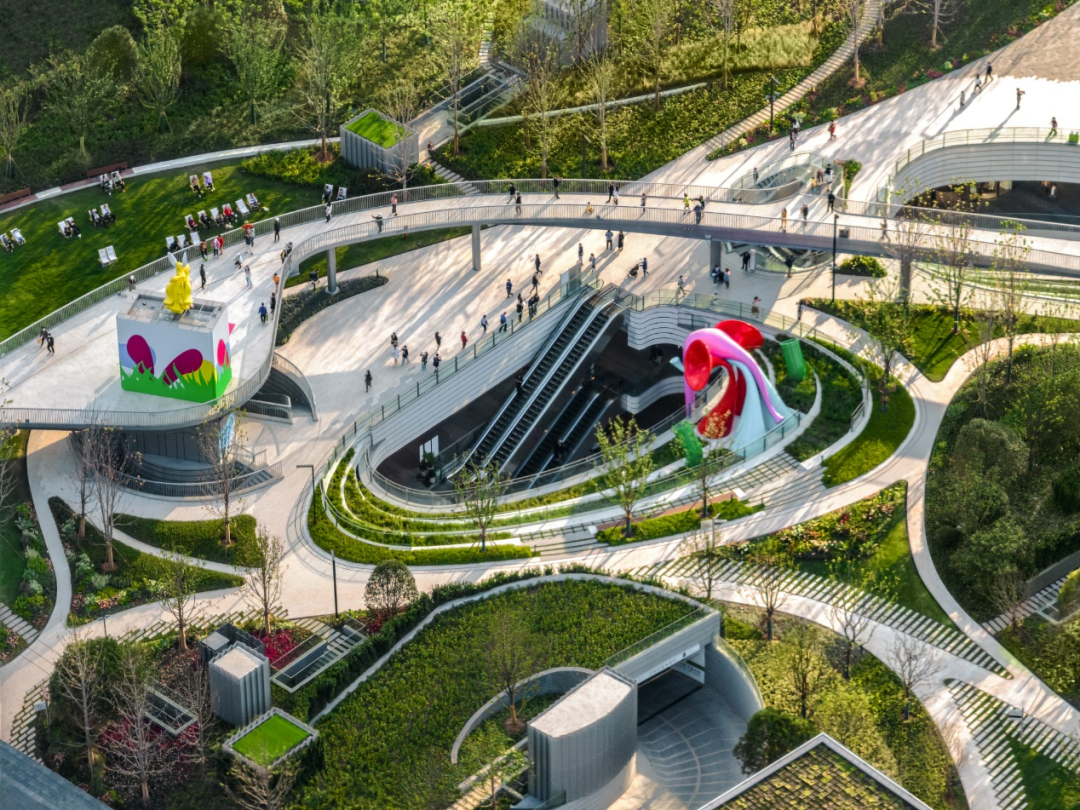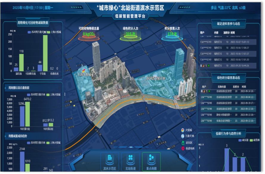 早在2022年2月发布的《北站街道全面推行林长制工作实施方案》中,确立了三级管理体系,形成了街道统筹协调,居民区主体推进,各部门联动协同的工作机制。2023年,街道更是以苏河湾万象天地为试点,开展“无废商场”建设,打造全市首个“城市绿心”低碳智能管理平台。