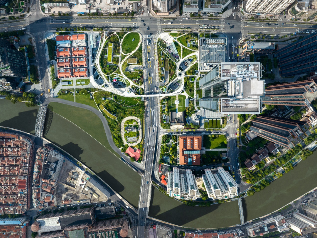 在苏河湾沿线,绿色走廊串联起了四行仓库—慎余里—天后宫—上海总商会等文化元素。通过“人文底蕴”来点亮绿地的环境布置,让社区绿地更有“厚度”,更贴近居民的文化需求。