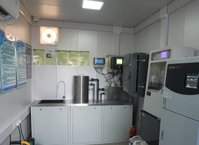 站内配备了先进的仪表设备,如氨氮测量仪、总磷测量仪、总氮测量仪、高锰酸盐指数测量仪等,实时对河道水质进行监测,并将数据上传至管理平台。