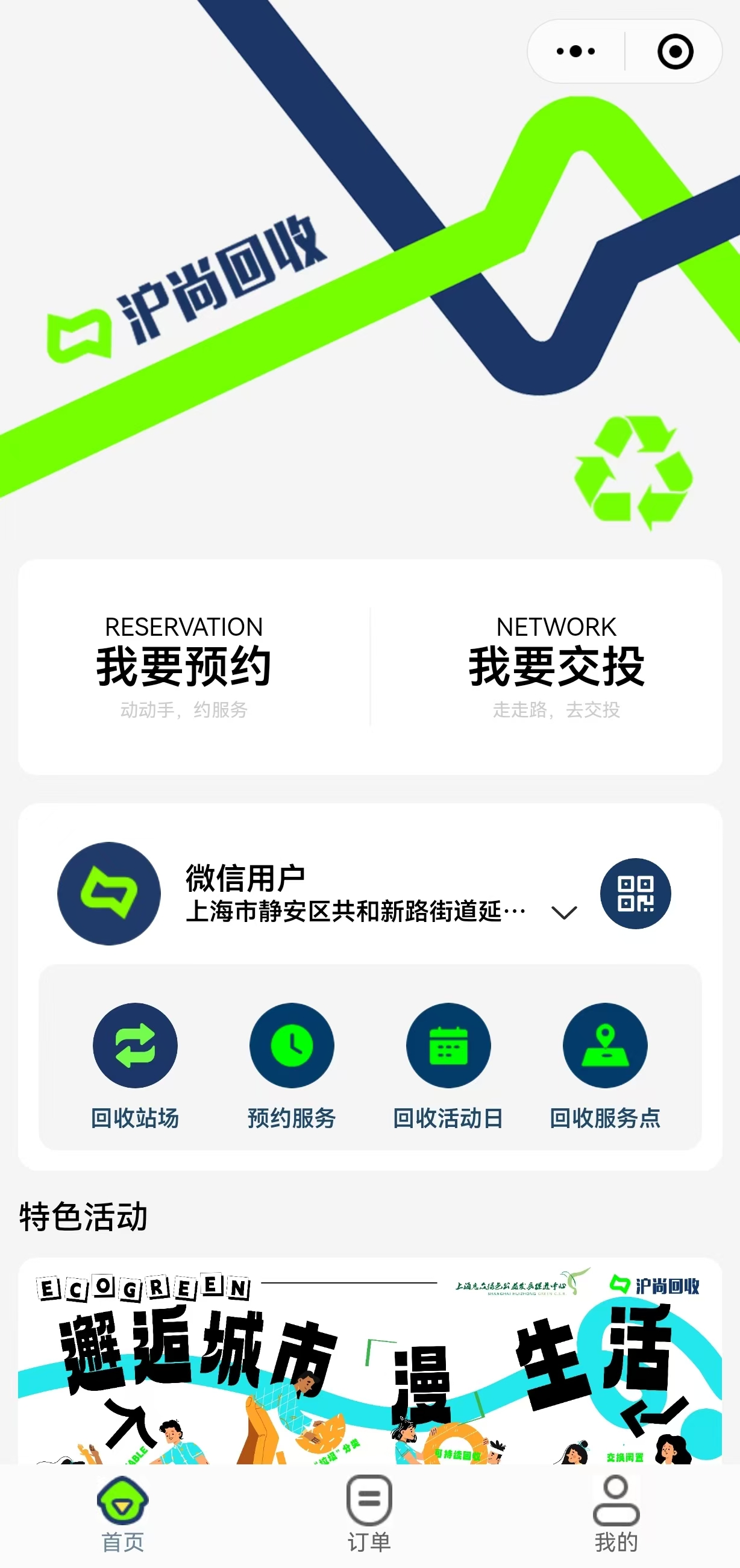 1、在微信中搜索“沪尚回收”或直接扫描二维码,便可进入小程序。