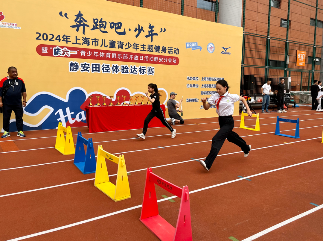 “奔跑吧·少年”2024年上海市儿童青少年主题健身活动暨“庆六一”静安分会场田径体验达标赛在这里举行。活动得到了静安中小学大力支持,11所静安区校园趣味田径联盟学校的校长出席启动仪式。百余名学生参与到这场体育盛会中,享受体育魅力,彰显青少年朝气蓬勃、昂扬向上的青春风貌。