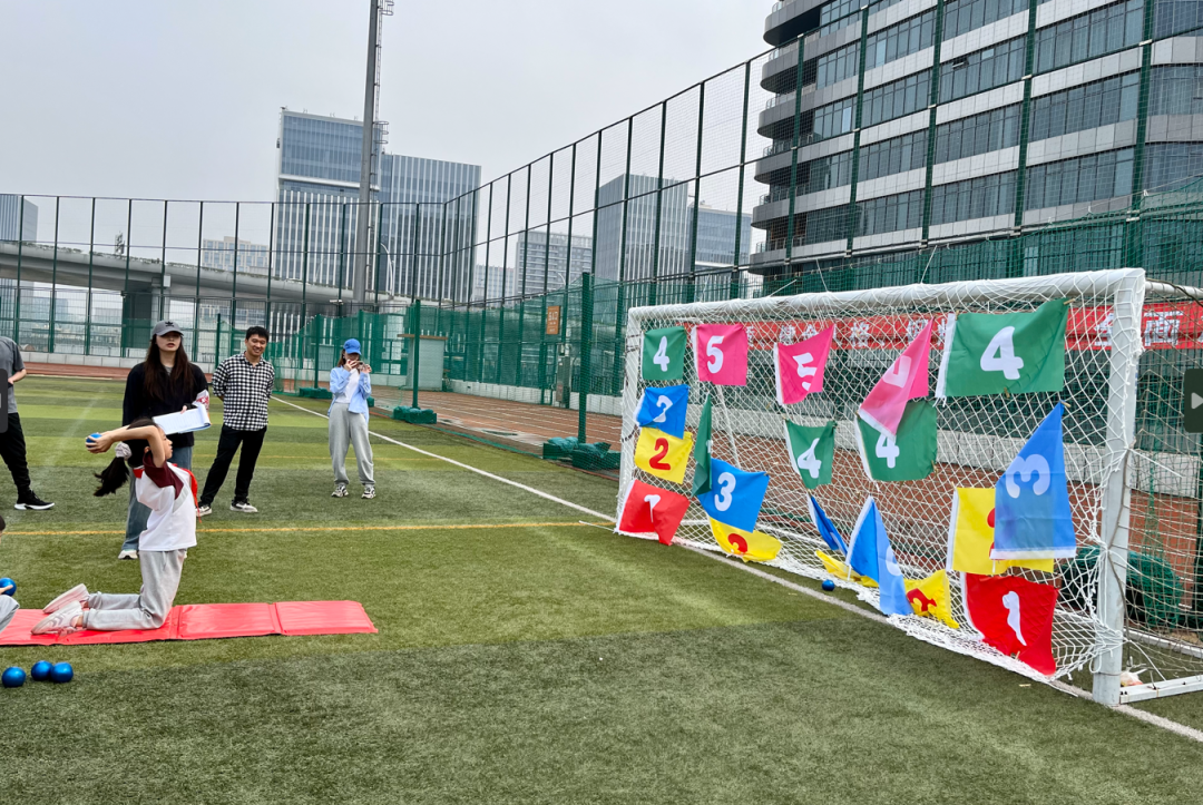 呼啸球、跪姿前掷实心球、跨栏、阻力跑……“六一”国际儿童节一早,一项项新颖又充满趣味性的运动项目在静安体育中心屋顶田径场火热进行。