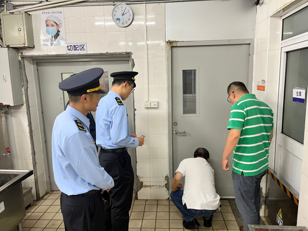 检查现场,三所学校严格落实“日管控、周排查、月调度”工作。然而,检查过程中也暴露出了一些问题,比如有学校食堂存在存放食用油存储空间过热、易发生变质的问题。宝山路市场监管所干部、疾控病媒防制科专家现场指导了处理方案,并要求及时整改。