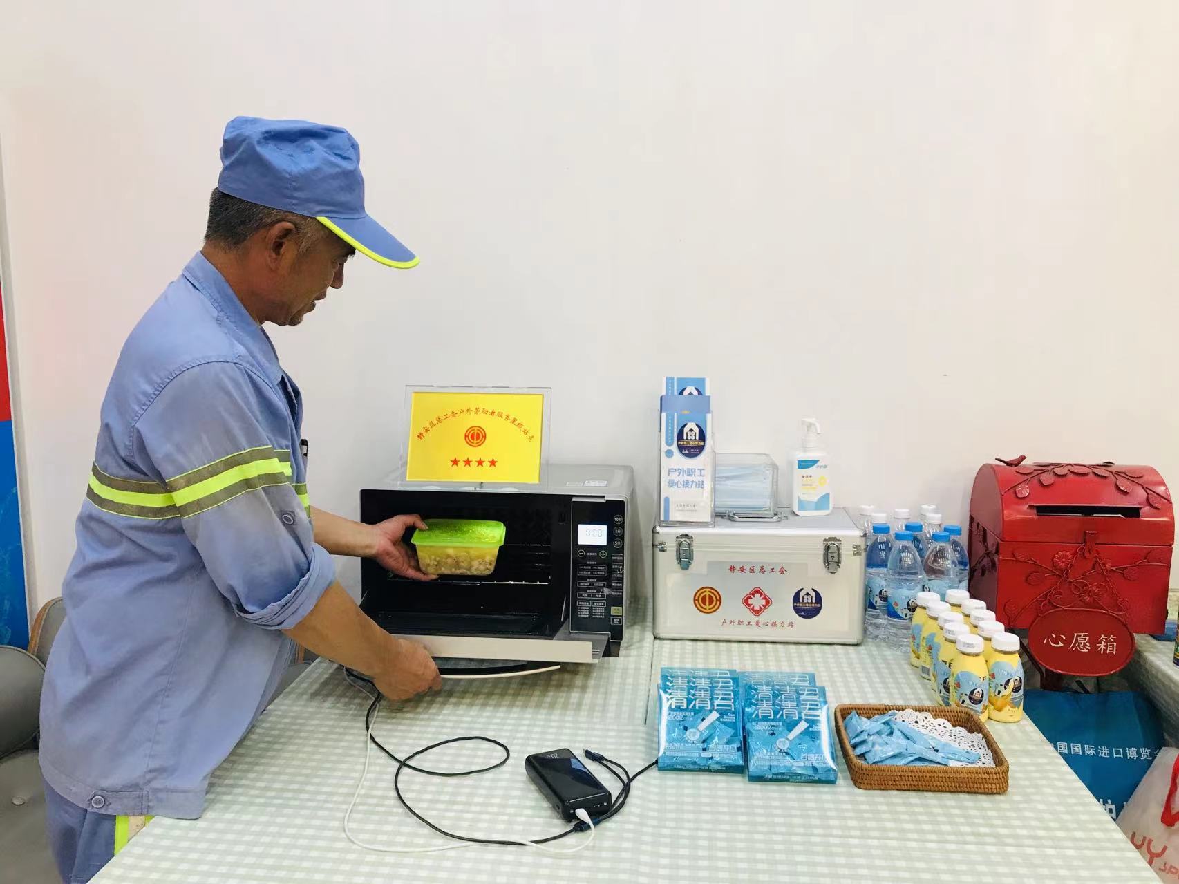 “夏季高温对户外一线职工是很大挑战,我们尽自己所能为他们送点清凉。”章店长说,“希望能让这小小空间迸发出慈善之爱的大能量。”据悉,北站街道户外职工爱心接力站链接多方慈善资源,为户外职工提供形式多样的便民服务,持续增强户外劳动者的融入感和归属感。