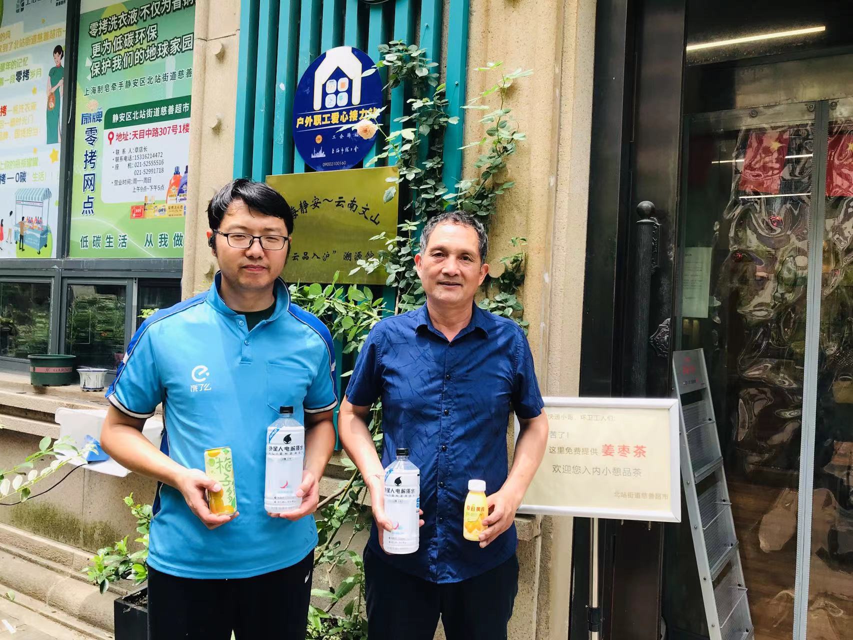 “外面实在太热了,好在有个地方可以让我们缓一缓、歇歇脚。”外卖小哥说。据站点负责人、慈善超市店长章莉萍介绍,“这些物资都是爱心企业捐赠的,放在这里给户外工作者们取用。”说着,她将一瓶电解质水递给小哥,让他补充一下体力。“爱心饮料不仅会放在站点,我们还会送到附近的快递驿站发放给快递小哥们。”章店长说。