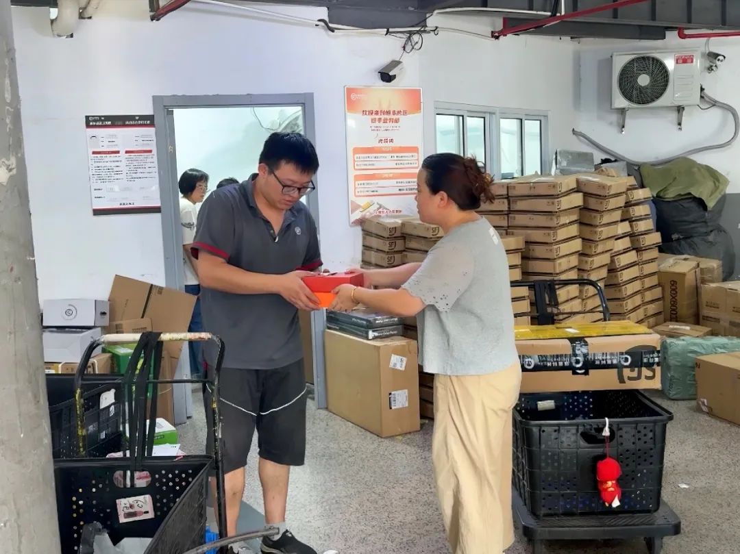 制作好的月饼被精心打包,送到快递小哥等新业态新就业群体手中,让他们在忙碌的工作之余感受到来自社区的关怀与温暖。