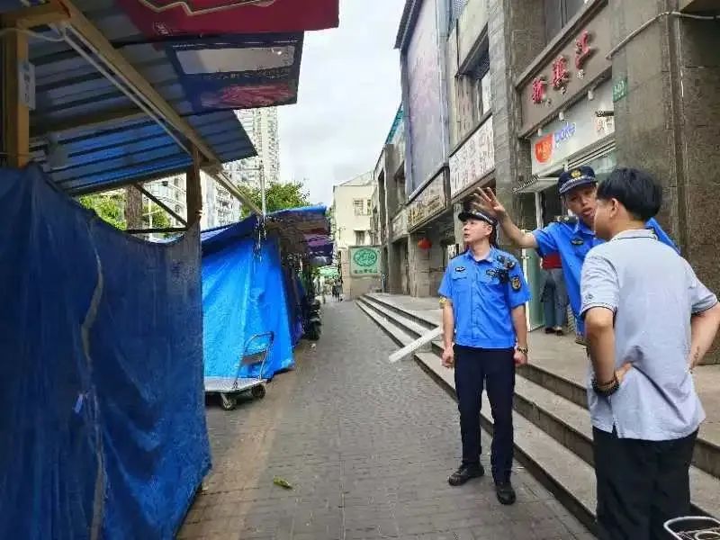 重点排查地下空间、高空坠物、建筑工地、排涝排水、小区绿化、城市基础设施方面的安全隐患。同时,对辖区店招店牌、户外广告等开展巡查,督促商户收回移动广告架,收起雨篷,第一时间清理异物,落实防汛主体责任。