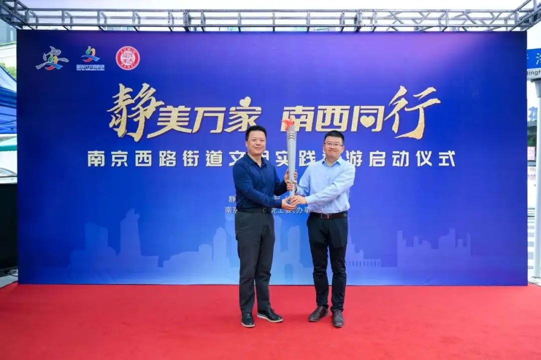 南京西路街道从江宁路街道手中接过社区文明巡游火炬,标志着“静美万家”社区文明巡游活动在南京西路街道正式拉开帷幕。