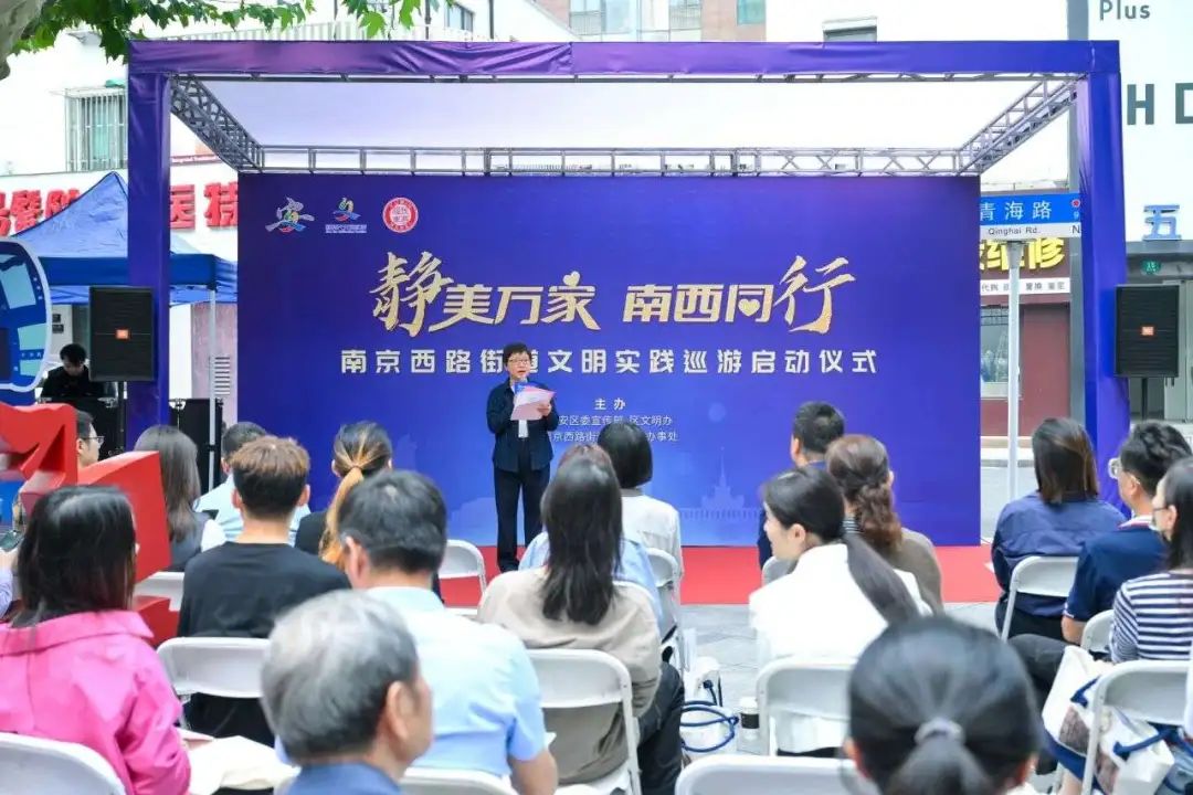 “静美万家”社区文明巡游是静安区今年打造的重点活动项目,以文明巡游火炬传递的形式,在全区14个街镇接力进行,接续传递文明之光。近日,“静美万家 南西同行”南京西路街道文明实践巡游启动仪式在南京西路青海路路口举办,将通过为期一周的文明巡游活动,丰富辖区广大群众的文体生活,传播文明理念,增强社区归属感,让文明更加贴近和融入生活,激发广大市民群众奋进新征程、建功新时代的使命感和责任感。
