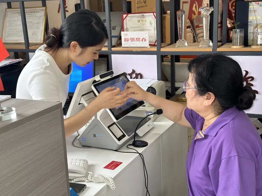 此外,街道12个居委会的首问接待窗口均已配备了“静邻帮办”设备,居民在家门口即可与事务中心进行连线咨询,完成业务办理闭环。