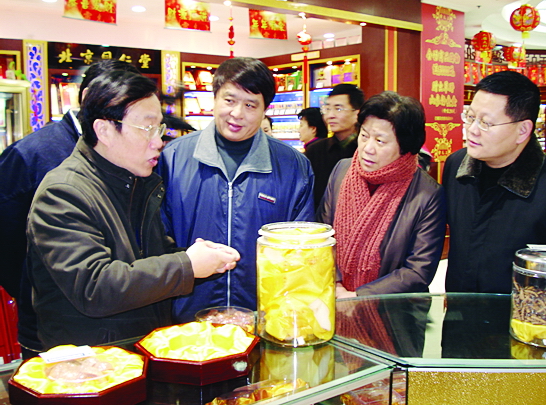 2月5日一早,区政协主席刘晓明等一行区政协领导,冒着蒙蒙细雨前往昌化菜市场和雷允上药城、三阳盛食品店视察春节市场供应情况,慰问一线商业职工。副区长陆晓栋等陪同视察。图为刘晓明一行与商业职工亲切交谈 记者 朱书华 静安时报提供