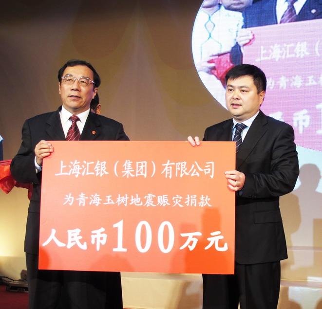 在日前举行的上海市第八届“光彩事业活动日”为青海玉树地震灾区赈灾捐赠仪式上,静安区政协副主席、区工商联主席沃伟东捐款100万元。上海市委常委、市委统战部部长杨晓渡为沃伟东等颁发捐赠证书。 俞蕾摄影报道 静安时报提供