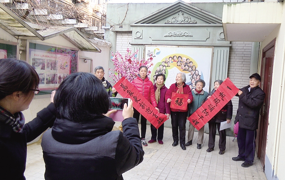 在参赛的全家福照片中,还有不少是“大家庭”的团圆照。在静安寺街道乐龄家园里,20多名放弃回家团圆、节日加班的站点工作人员聚在一起,手拿春联拍了张红红火火的全家福,用这样的方式记录下365天不间断为老服务的酸甜苦辣。而在华山“居民之家”里,居民们纷纷拿着自己手写的“福”字合影,暖意浓浓。