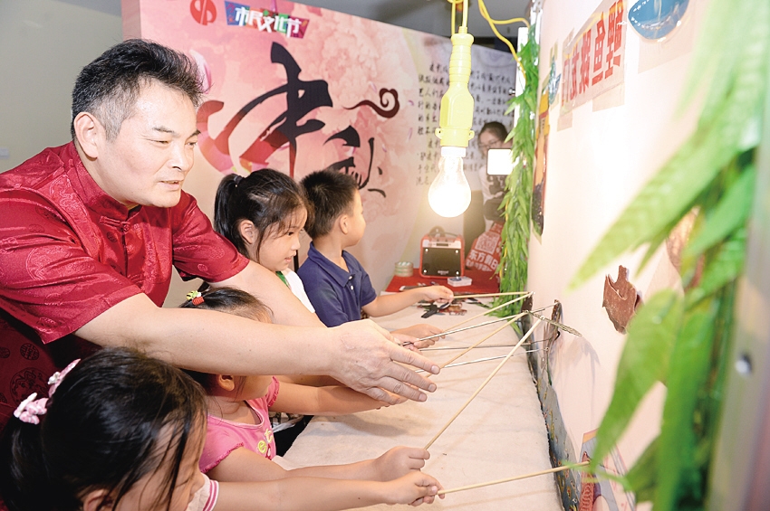 在以传播民族民俗文化技艺为主的游园活动区域,居民们有的兴致勃勃地竞猜灯谜,有的观赏民间艺人表演的皮影戏、西洋镜,还有的则跟着民间巧匠学习剪纸技艺,或跟着美食达人学习制作冰皮月饼的手艺,并慷慨地分给参加游园活动的居民品尝。