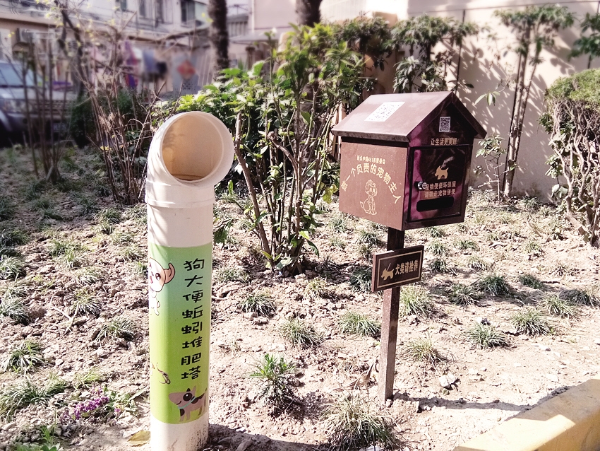 渐渐的,小区宠物随地大小便的情况有所减少。居委会乘胜追击、再出新招,在小区的花坛内建造宠物便纸箱和蚯蚓堆肥塔。宠物便纸箱很多小区都有,但蚯蚓堆肥塔这个装置就很特殊,将一根1米长的白色塑料管插在泥土里,向里面投入蚯蚓,利用蚯蚓以腐败的有机物为食的特性,让蚯蚓“消耗”掉宠物的粪便,产生的肥料供给周边的植物做养分,实现“便”废为宝。目前,居民大都认可“变废为宝”的做法,主动配合的人越来越多,小区环境也得到了明显改善。