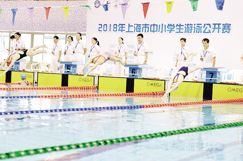 5月26、27日,由市教委主办,市中学生体育协会、市游泳协会、静安区教育局和静安区体育局承办,民立中学协办的2018年上海市中小学生游泳公开赛,在静安区运动健身中心游泳馆举行,来自全市124所中小学校(含职校)的600余名选手参赛。