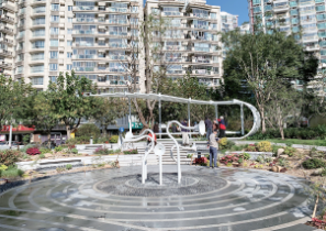 五线谱元素的座椅和步道、能发出音乐的互动装置、精致的园艺景观,进入位于胶州路安远路路口的音花园,你会发现很多别出心裁的设计。