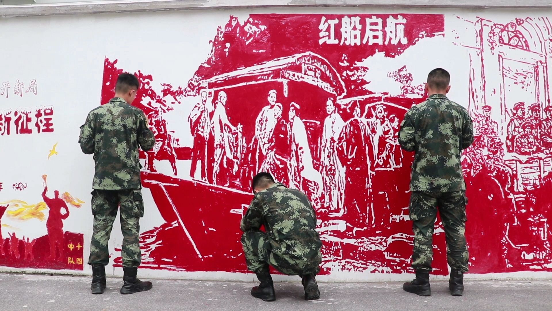 从具有伟大意义的红船启航、红军长征,再到抗战胜利、新中国成立,从鼓舞人心的两弹一星,再到国人倍感自豪的航天精神,一幅幅激动人心的场景,呈现在70余米的手绘文化墙上,会是怎样令人振奋的情景?这几天,在武警上海总队执勤三支队营区,武警战士正在以这样一种特别的方式迎接建党百年,官兵们跨越时空,感悟建党百年的光辉历程。