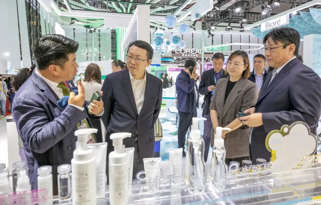 王华首先来到创新孵化专区的欧莱雅创新馆。连续六年参加进博会的欧莱雅今年首次进驻创新孵化专区,并作为首家跨国美妆企业在专区内设立“BIG BANG北亚美妆科技共创孵化展区”。