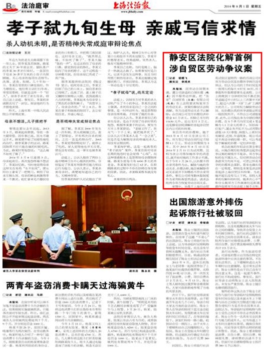 静安区法院化解首例 涉自贸区劳动争议案