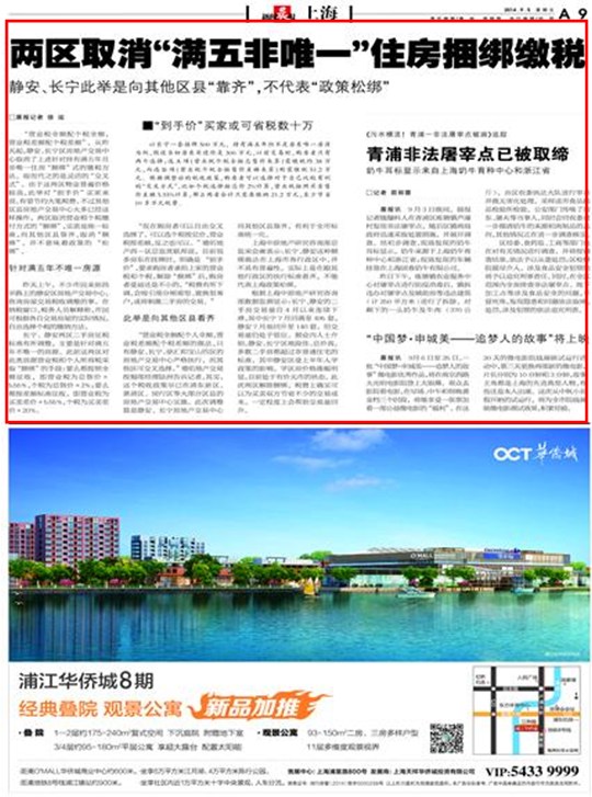 长宁、静安两区二手房征税标准有所调整,主要是针对满五年不唯一的房源。此前这两区对此类房源营业税和个人所得税采取“捆绑”的手段:要么都按照全额征收,即营业税为总售价×5.55%,个税为总售价×2%;要么都按差额标准征收,即营业税为买卖差价×5.55%,个税为买卖差价×20%。