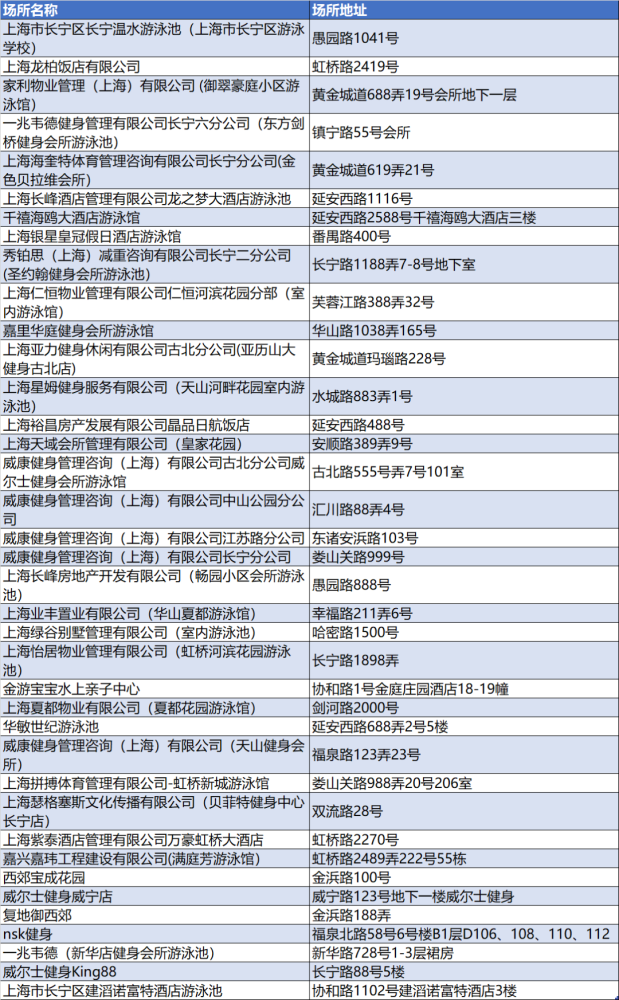 长宁开放游泳场所