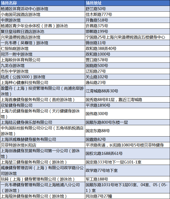杨浦开放游泳场所