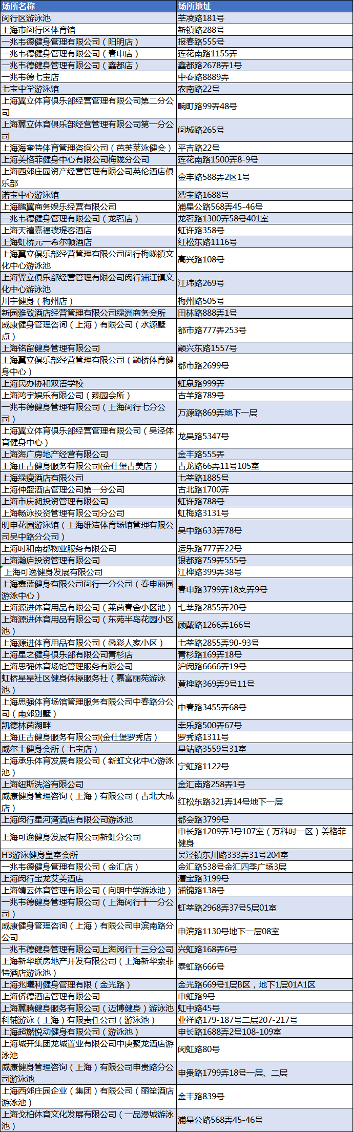 闵行游泳开放场所