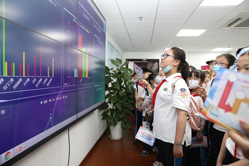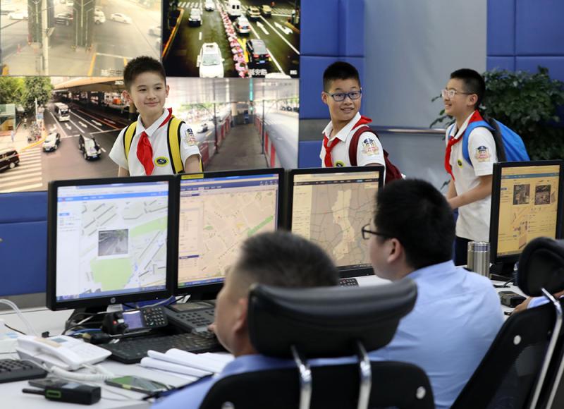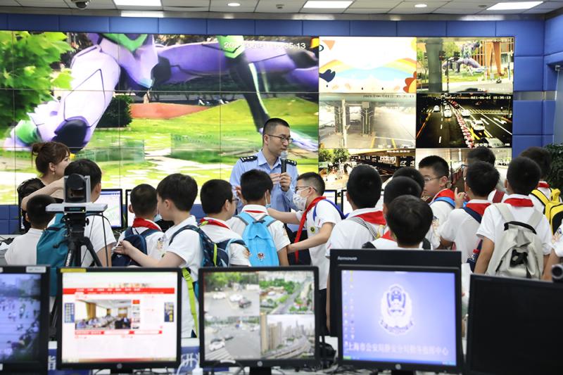 孩子们参观交警指挥大厅,近距离了解了高清探头对于城市交通和治安管理的重要作用。