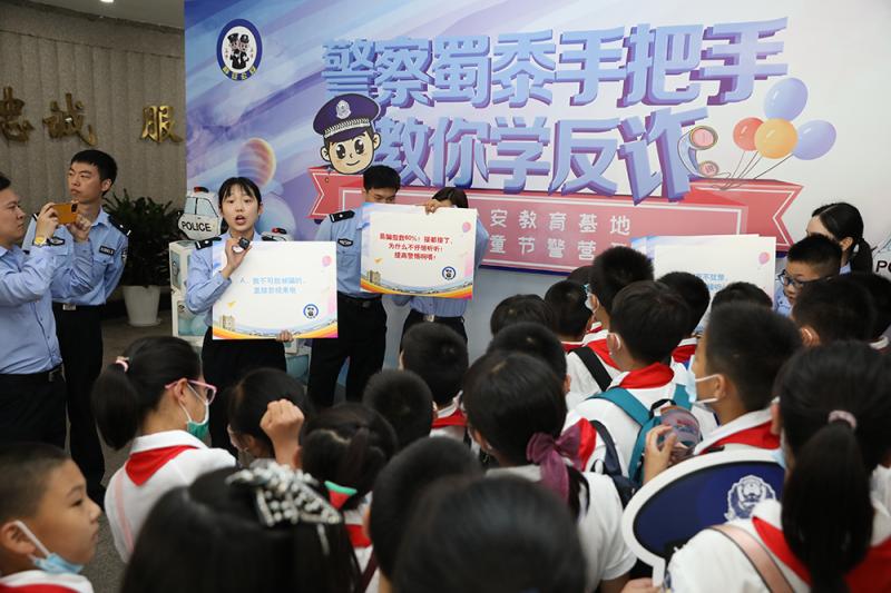 2021年 6月1日下午,在上海市公安局静安分局教育基地,一场面向小朋友的“反诈宣传”活动热烈进行:扫码观看“反诈脱口秀”、答题测试“反诈”指数赢取“反诈小萌警”印章、分组参与情景剧“萌警小课堂”、反诈儿童画“填色”,一场精彩而严肃的反诈宣传活动在孩子们的欢声笑语中变得活泼生动。