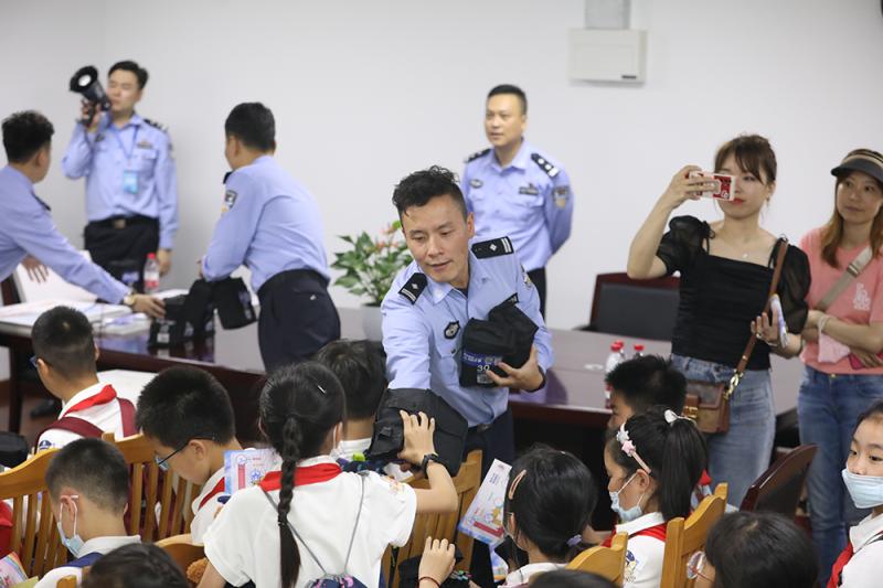 警察发出大量小礼物和孩子们互动。每个孩子都有一个警察梦,“小萌警”此次前来参加活动,不但全面参观了解了警察叔叔的日常工作,还以体验式互动教学的方式,零距离体验和学习到各种反诈知识,激发了孩子们的守法意识。