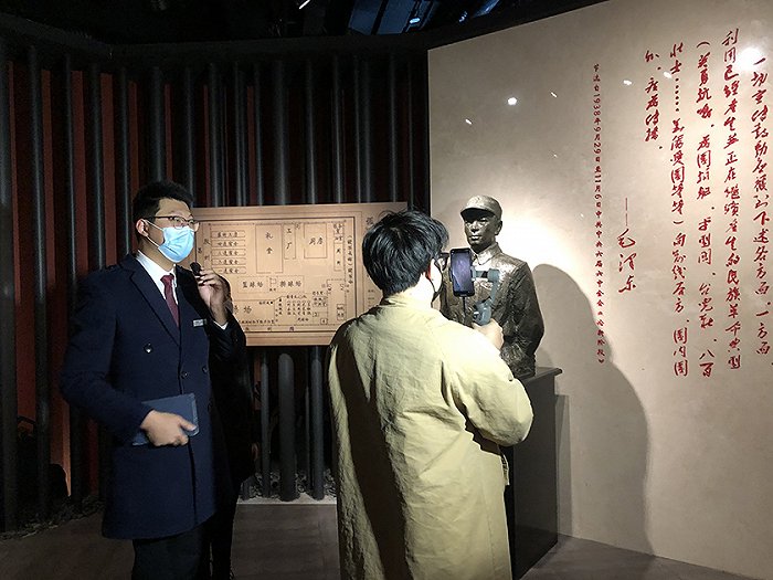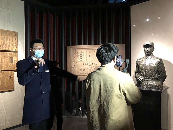 2. 同时,纪念馆内的在线导览直播,也为不能身临现场的市民讲述了四行仓库弹孔墙背后的故事。