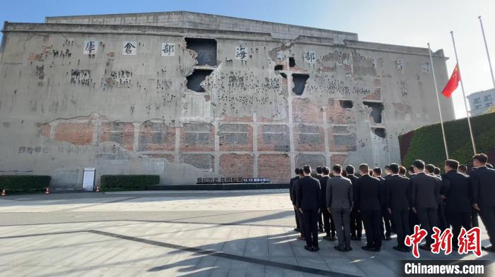 中新网上海12月13日电 (康玉湛 李秋莹)2021年12月13日是第8个南京大屠杀死难者国家公祭日。结合上海市疫情防控的需要,2021年的公祭日当天,上海四行仓库并没有安排统一的现场悼念活动,但不少民众仍自发来到四行仓库,将鲜花敬献在象征中国军民共御外敌的弹孔墙前,寄托哀思,并向抗战中的英烈鞠躬致敬。