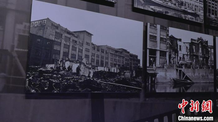 “这组照片是战火中的四行仓库,是美国人海岚·里昂拍摄的。那么这组照片主要是两部分组成,左半边是一个战火中远景的硝烟弥漫的四行仓库,而右半边则是一个战后的近一点的四行仓库,像这张照片上我们甚至可以看到巡逻的日本士兵”,四行仓库抗战纪念馆解说员袁祺指出,在当时的情况下,能够从四行仓库背面,也就是所谓日战区拍出来的照片是非常珍贵的,也是该馆的“镇馆之宝”。