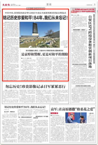 以史为鉴,珍爱和平,开创未来。昨天,第八个南京大屠杀死难者国家公祭日,上海各界纷纷通过线上线下开展悼念活动,以此凝聚起中华儿女维护和平、圆梦中华的共同精神信仰和磅礴力量。