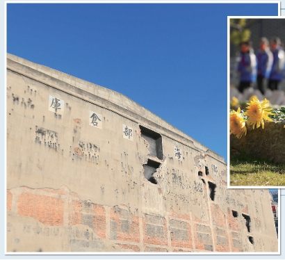 ◆四行仓库西侧墙壁上的弹洞。本报记者 叶辰亮摄