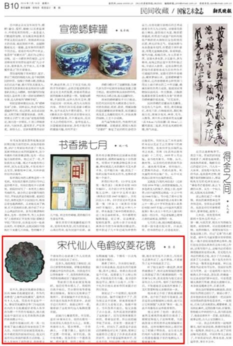 等到那日我来到展览现场时,他已经等在那儿了,简短的自我介绍后,万分期待地等着他拿出铜镜来,谁知只见他拿出了张照片。原来铜镜并不在他身边,尚存放在他故乡的老家中,此刻手边只有照片。我接过照片一看,便看到了这枚宋代仙人龟鹤纹菱花镜。