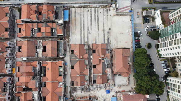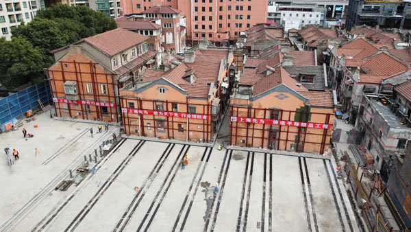 张园北区3幢文物建筑顺利平移至中间址临时位置 方便文物建筑原址地下空间开发更新