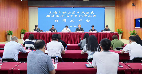 图说:“推进法治化营商环境工作”新闻发布会现场 静安法院供图