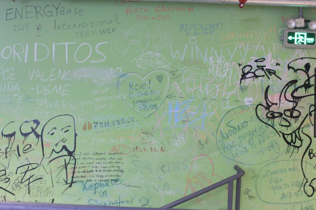 一楼,每家店铺的陈设都极具创意,使人感觉仿佛置身于展览空间。建筑的整体色调依然为白色,但在楼梯处,保留了老厂房里的绿色涂鸦墙,这些涂鸦最早可以追溯到2000年初,上面有来自不同国家的旅客留下的不同文字,与各品牌店铺一样,都有着张扬的个性,彰显着这个空间中的人过去生活的痕迹。改造,使其焕发出崭新的生命力。
