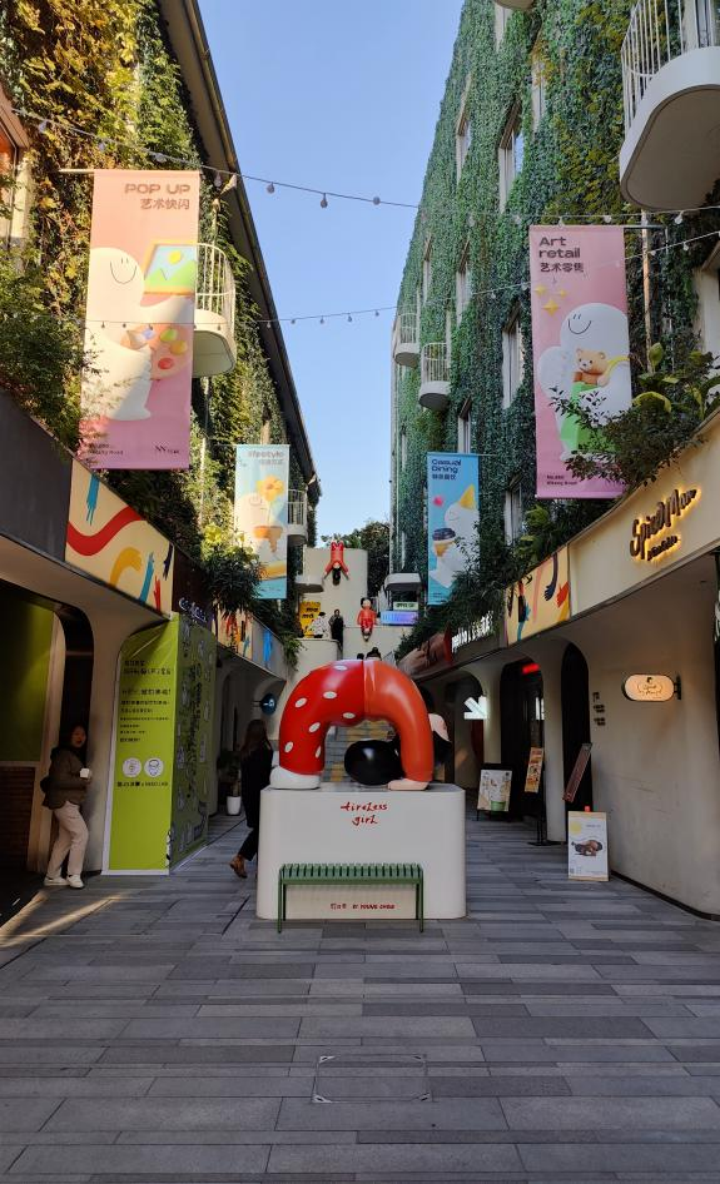 巨大的绿色兔子引人合影,彩虹隧道让人仿若置身幻镜。在这里,你能看到过期杂志、创意礼品、Tufting……极高的饱和度、五彩斑斓的空间陈列,很容易出片。M+马利文化艺术街区成功地将潮流、艺术等元素融入人们的日常生活,让人们在空间中感受到城市更新的魅力与活力。