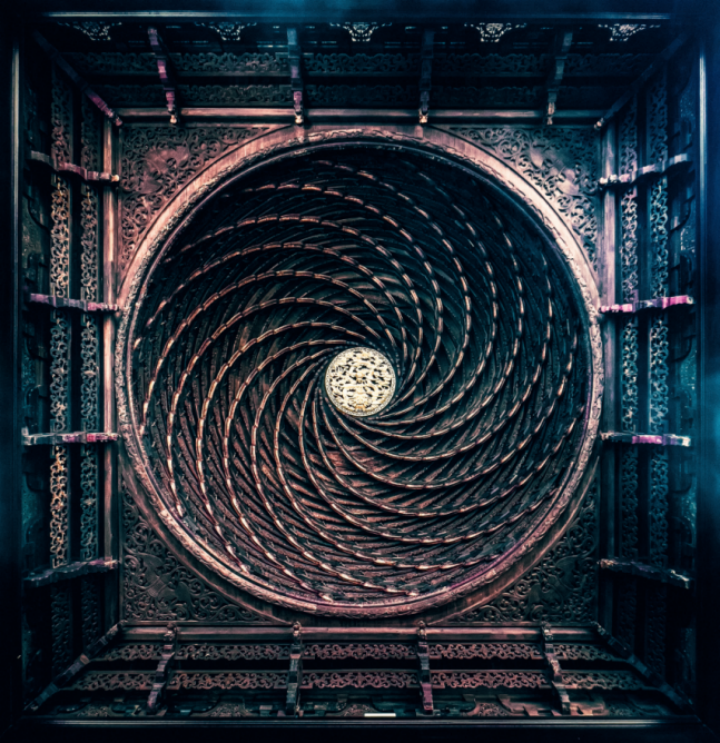 “天后宫”建于1884年,是江南殿堂式古建筑,也是上海历史上规模最大、形制最全、规格最高的妈祖庙。在修复过程中,恢复了戏台、门楼和东、西看楼,其中修复难度最大,也最为引人注目的是藏于二楼戏台顶部的藻井,它采用中国传统“榫卯”技艺拼搭而成,修缮团队对1000多件木构件和1600多件砖石构件进行了逐一修复。