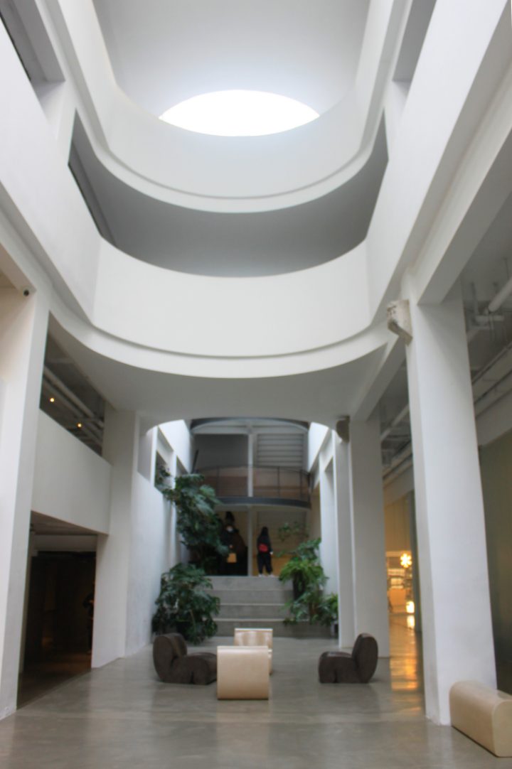 其中现所一期整栋楼都是纯白色系,配着极简的几何线条,偶尔能窥见一角老厂房的斑驳痕迹。白色的空间极具未来感,弧形线条打破了直线的凌厉感,为空间增添了几何碰撞的艺术气息。