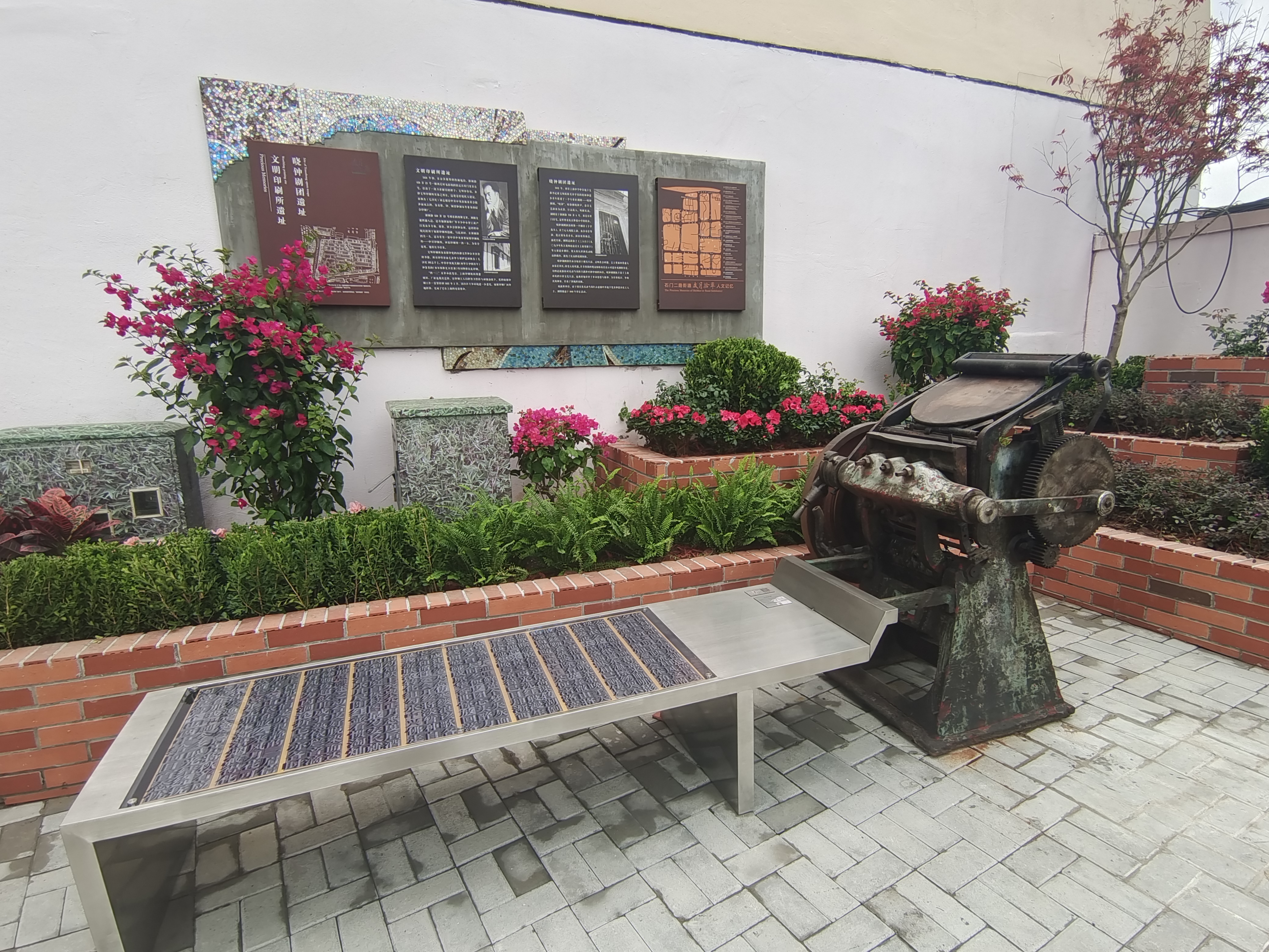 静安区新闸路慈溪路路口处,有一张用废旧的老式印刷机改造的公共座椅,以此向座落在辖区的红色印刷所遗址——“文明印刷局”和党的地下印刷工作者致敬。