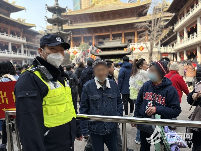 2月10日(正月初一)上午11时许,静安寺派出所民警周家兴在执勤时遇到市民李阿婆求助。原来,李阿婆和老伴一同觐香祈福,却在寺庙法堂前走散了。老伴没带手机,耳朵也不好,她担心出意外。周家兴立即向现场临时指挥部汇报情况,经由临时指挥部电台发布寻人协查,约10分钟后,民警根据协查在寺庙西门外愚园路上的人群中找到了还在徘徊逗留的老人。