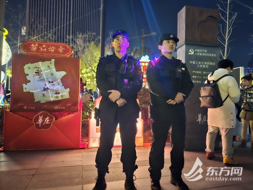 闵行特警何子昂、张诚效在莘庄镇春申湖周边开展步巡。作为特警支队专职教官,何子昂同志拥有丰富的实战经验,教授警员450人次。新入职的特警队员张诚效在初次参加2023年特警总队能级考核中便崭露头角,考核成绩在全市特警中排名前50,荣获“尖兵”称号。张诚效表示,华灯初上,能够在人群中增加群众的安全感,这也是我们特有的年味。自6日晚,2024年莘庄灯会正式亮灯后,特警根据勤务安排,将在5个重点日组织步巡。