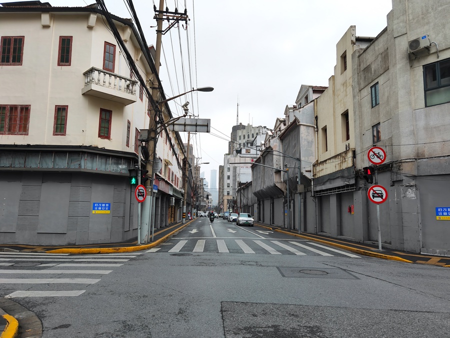 例如,旧改基地“水泥封门”现象并不鲜见。居民搬迁了,旧改基地开始封闭,开发过程一般需要三至五年。而“空窗期”一些旧改基地的沿街门面会用水泥统一封门。这类现象在黄浦、静安、虹口北外滩等中心城区核心路段并不少见。